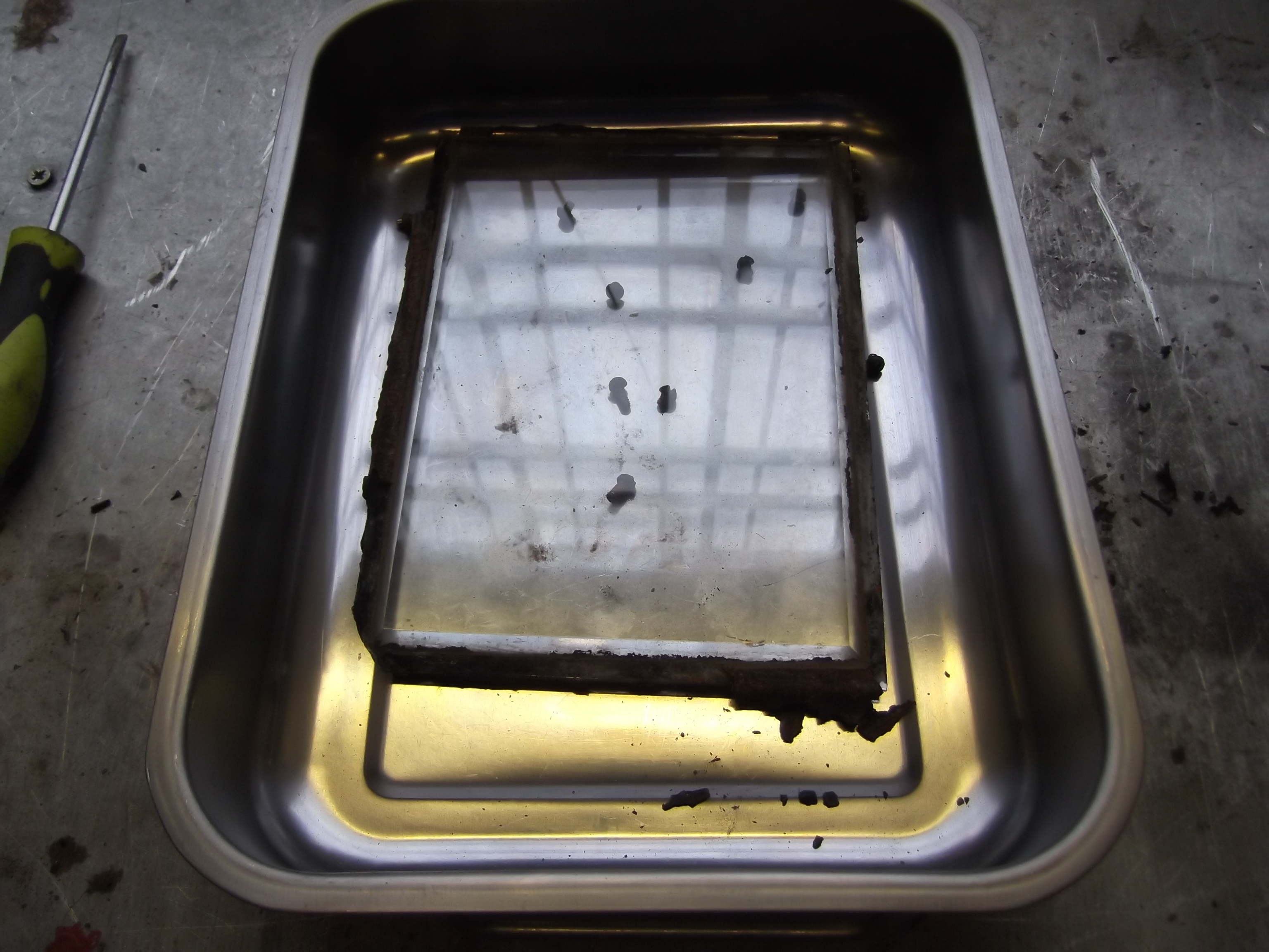 The glass is removed and cleaned